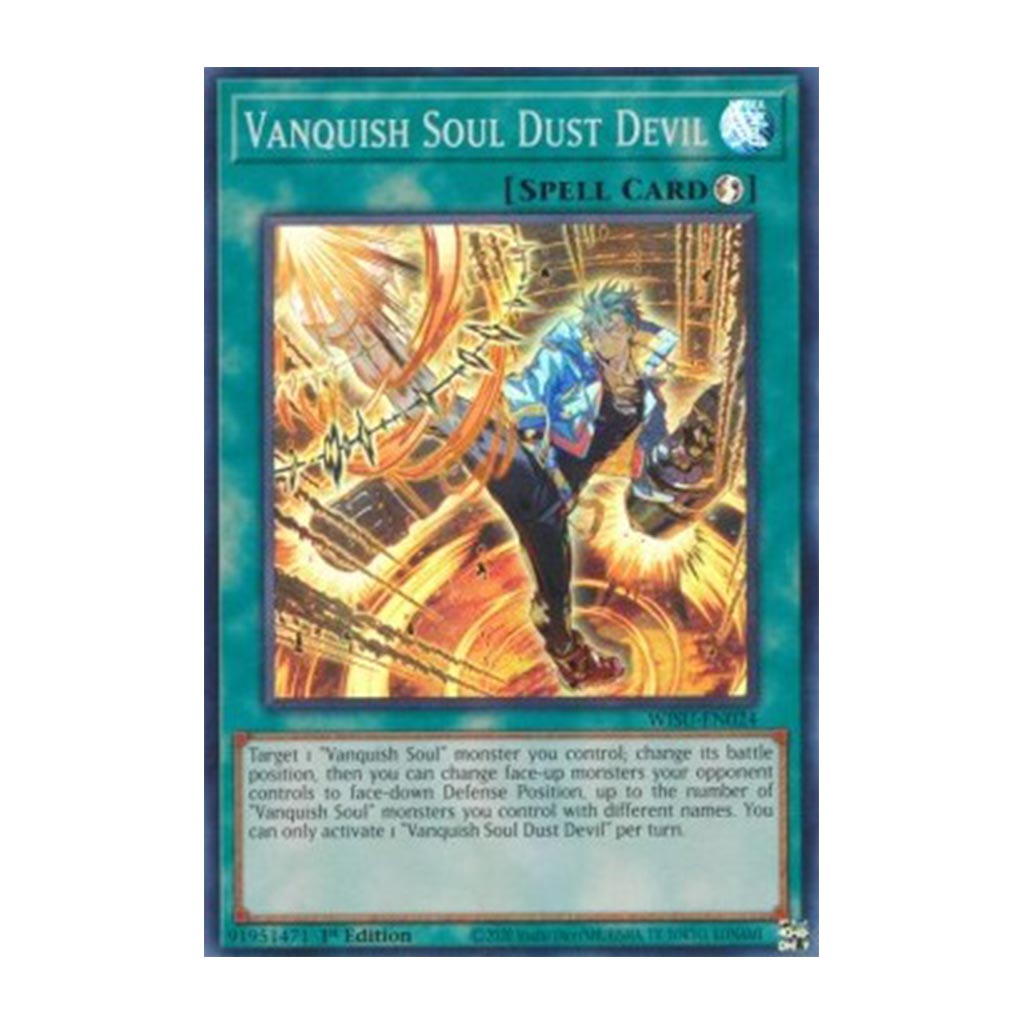Ciblez 1 monstre "Âme du Vainqueur" que vous contrôlez ; changez sa position de combat, puis vous pouvez changer un nombre de monstres face recto contrôlés par votre adversaire en Position de Défense face verso, inférieur ou égal au nombre de monstres "Âme du Vainqueur" que vous contrôlez de noms différents. Vous ne pouvez activer qu'1 "Âme du Vainqueur Tourbillon de Poussière" par tour.