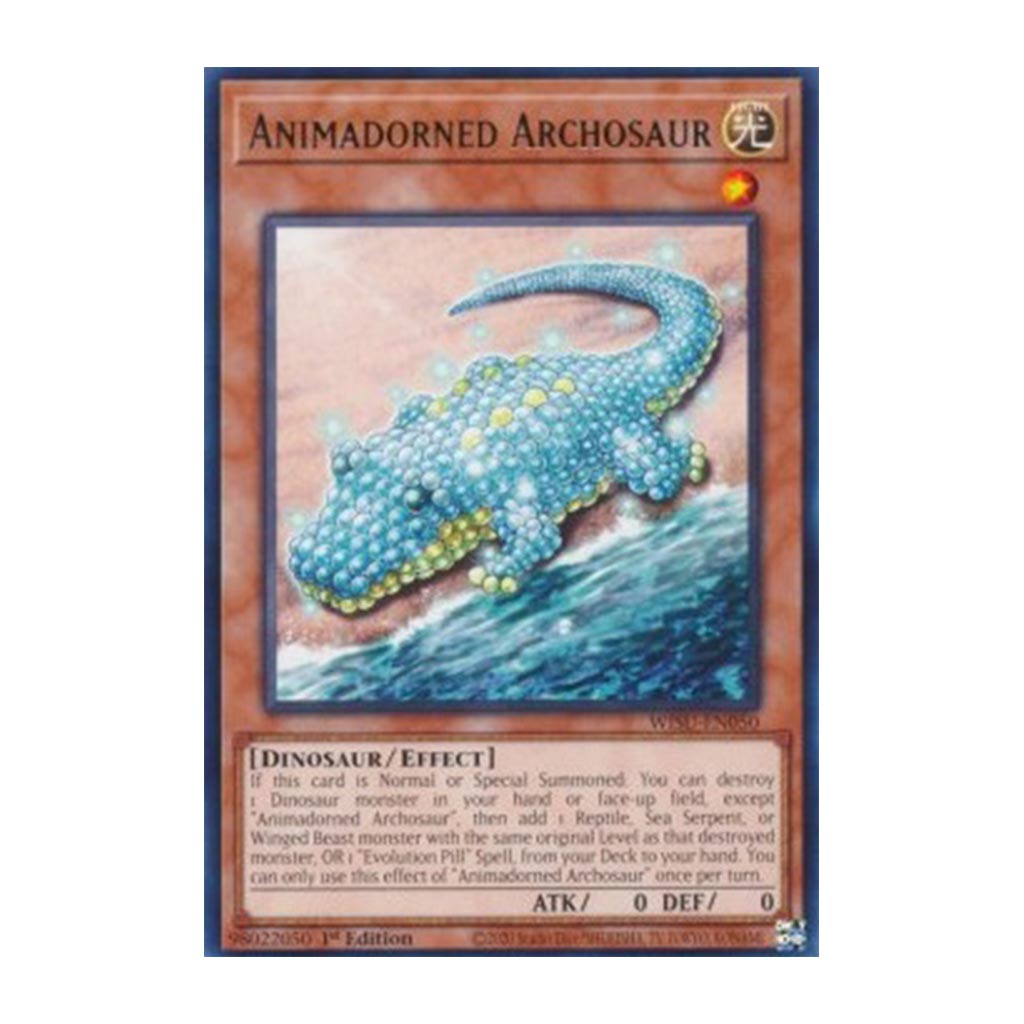 Si cette carte est Invoquée Normalement ou Spécialement : vous pouvez détruire 1 monstre Dinosaure ("Archosaure Animadorné" exclu) dans votre main ou Terrain face recto, puis ajoutez 1 monstre Reptile, Serpent de Mer ou Bête Ailée du même Niveau d'origine que le monstre détruit OU 1 Magie "Pilule" depuis votre Deck à votre main. Vous ne pouvez utiliser cet effet de "Archosaure Animadorné" qu'une fois par tour.