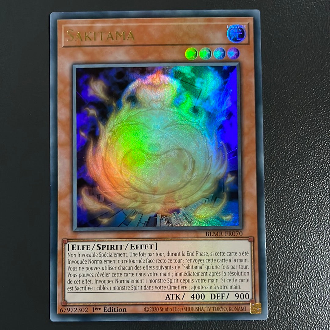 Non Invocable Spécialement. Une fois par tour, durant la End Phase, si cette carte a été Invoquée Normalement ou retournée face recto ce tour : renvoyez cette carte à la main. Vous ne pouvez utiliser chacun des effets suivants de "Sakitama" qu'une fois par tour. Vous pouvez révéler cette carte dans votre main ; immédiatement après la résolution de cet effet, Invoquez Normalement 1 monstre Spirit depuis votre main. Si cette carte est Sacrifiée : ciblez 1 monstre Spirit dans votre Cimetière ; ajoutez-le à votre main.