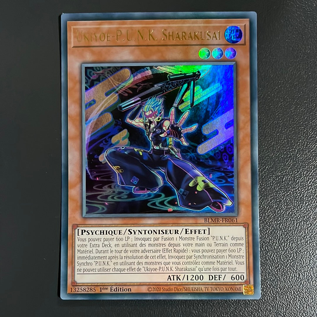 Vous pouvez payer 600 LP ; Invoquez par Fusion 1 Monstre Fusion "P.U.N.K." depuis votre Extra Deck, en utilisant des monstres depuis votre main ou Terrain comme Matériel. Durant le tour de votre adversaire (Effet Rapide) : vous pouvez payer 600 LP ; immédiatement après la résolution de cet effet, Invoquez par Synchronisation 1 Monstre Synchro "P.U.N.K." en utilisant des monstres que vous contrôlez comme Matériel. Vous ne pouvez utiliser chaque effet de "Ukiyoe-P.U.N.K. Sharakusai" qu'une fois par tour.