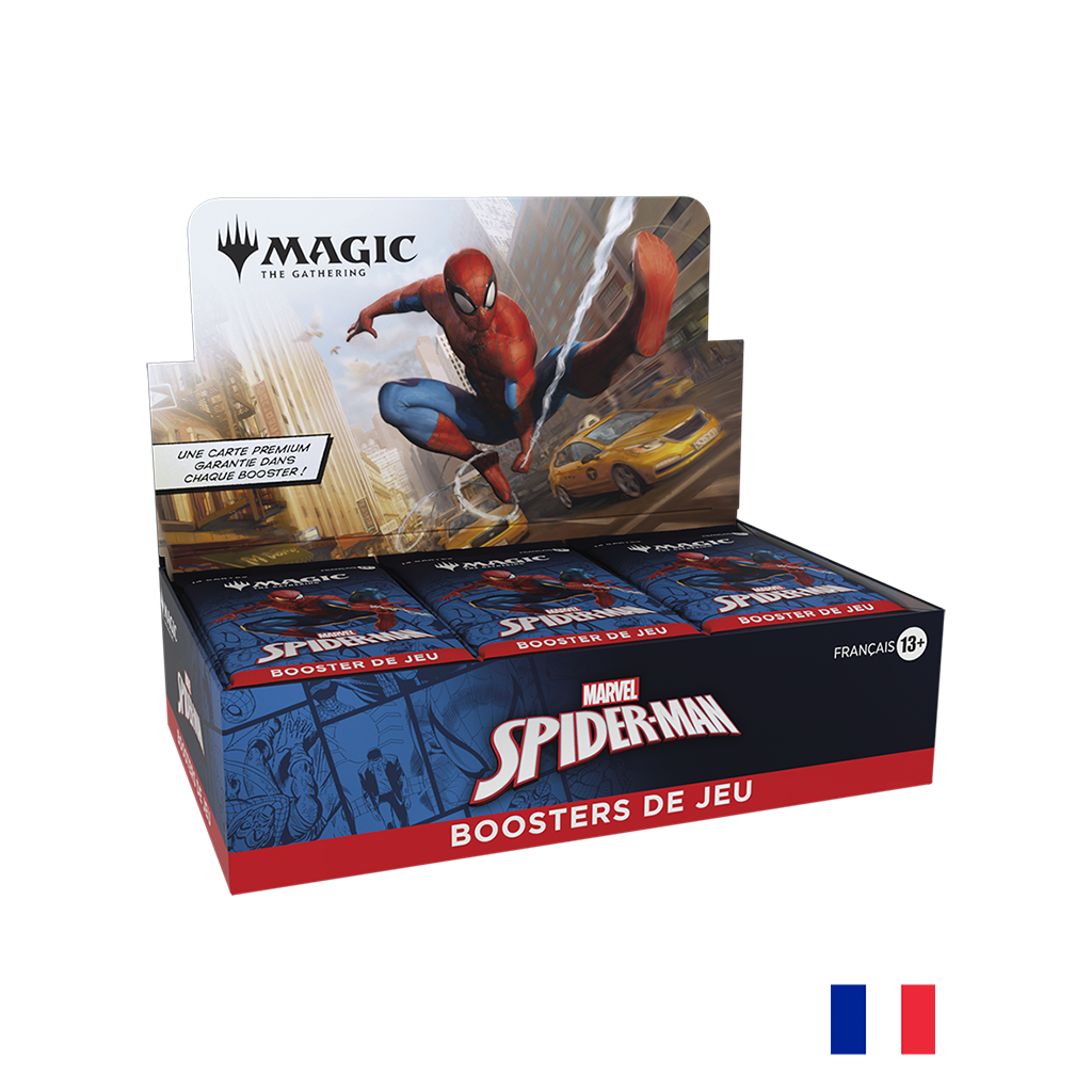 📦 CONTENU D’UNE BOÎTE PLAY BOOSTER SPIDER-MAN — 30 boosters Magic: The Gathering | Marvel’s Spider-Man, contenant chacun 14 cartes MTG.