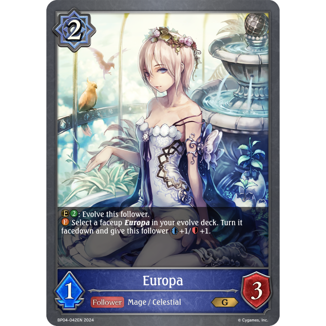 Select a faceup Europa in your evolve deck. Turn it facedown and give this follower
