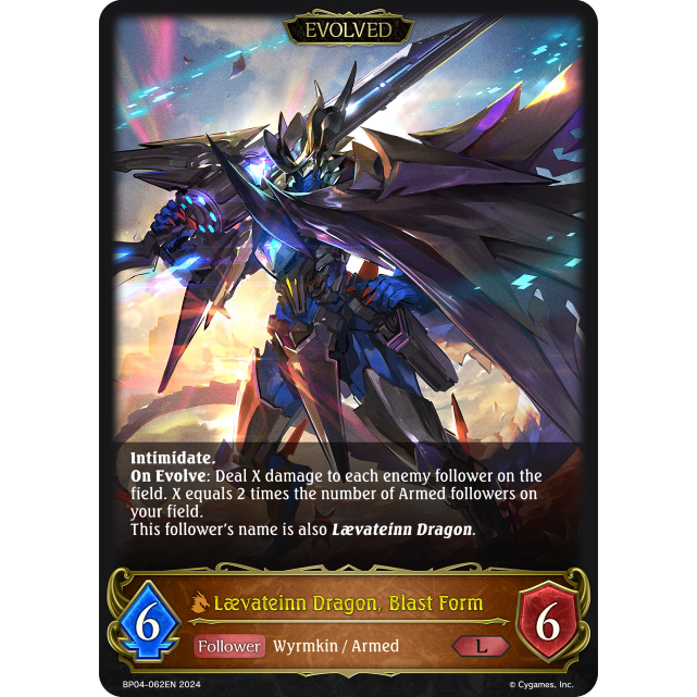 On Evolve: Deal X damage to each enemy follower on the field. X equals 2 times the number of Armed followers on your field.