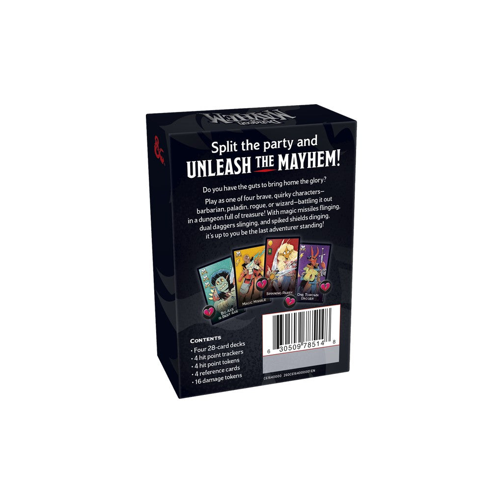 Dans D&D Dungeon Mayhem, gagnez en étant le dernier aventurier encore debout. Jouez le rôle d'un des quatre personnages courageux et excentriques qui se battent dans un donjon plein de trésors.