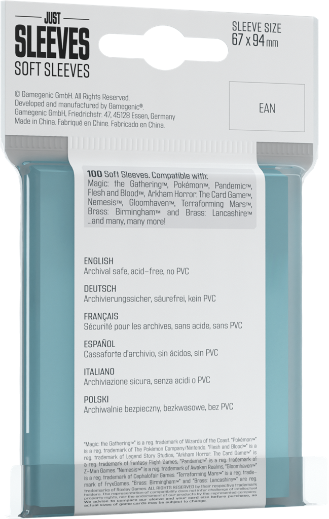 Protégez vos cartes de jeu avec ces 100 Sleeves souples de la marque Gamegenic. Idéales pour la protection, l'archivage et le stockage de vos cartes, ces sleeves vous permettent de garder votre collection en parfait état. Ne laissez pas vos cartes s'abîmer, utilisez les Soft Sleeves GG : 100 Just Sleeves !