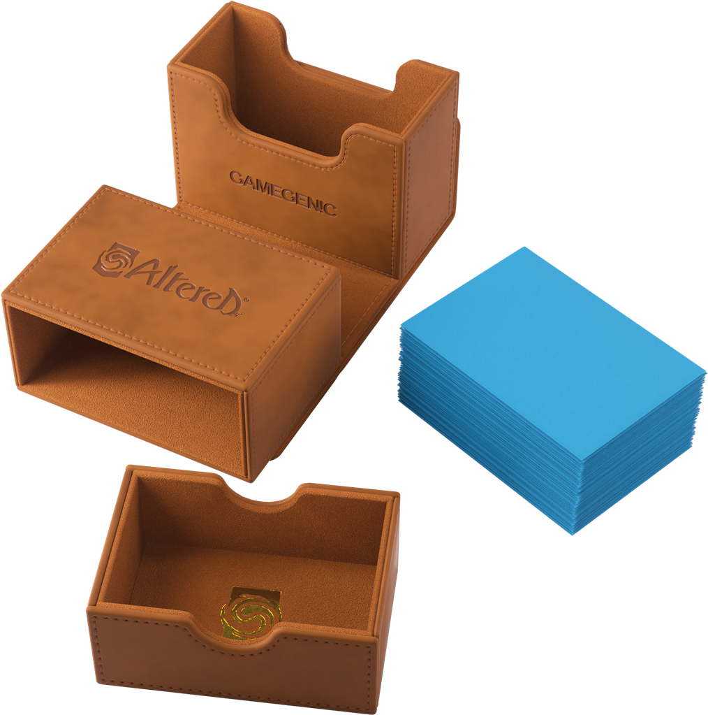 Le Deck Wallet est une boîte de jeu premium sous licence officielle spécialement conçue pour les besoins des joueurs d'Altered®. Vous pouvez identifier votre jeu au premier coup d'œil grâce à la pochette et à la découpe sans ouvrir la boîte. Le Deck Wallet est parfaitement dimensionné pour contenir un jeu complet de plus de 50 cartes à double enveloppe - ou même 2 jeux complets lorsque le tiroir est retiré.