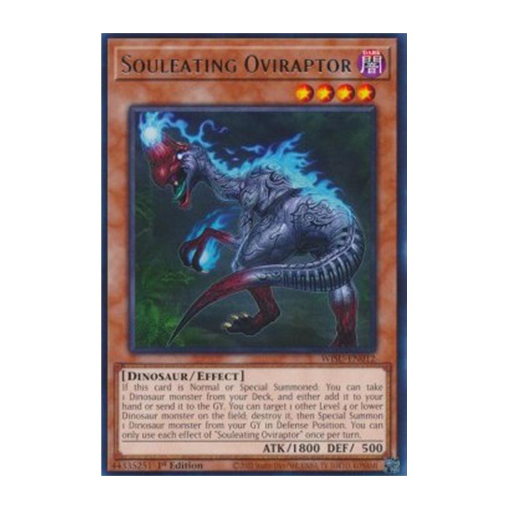 Si cette carte est Invoquée Normalement ou Spécialement : vous pouvez prendre 1 monstre Dinosaure depuis votre Deck, et soit ajoutez-le à votre main soit envoyez-le au Cimetière. Vous pouvez cibler 1 autre monstre Dinosaure de max. Niveau 4 sur le Terrain ; détruisez-le, puis Invoquez Spécialement 1 monstre Dinosaure depuis votre Cimetière en Position de Défense. Vous ne pouvez utiliser chaque effet de "Oviraptor Mange-Âme" qu'une fois par tour.